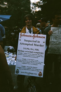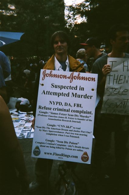Ironically, “Occupy Wall Street” has created an opportunity for Sean to interact with a concerned and supportive audience. He has handed out thousands of his flyers. His story of the exploitation of an individual by a powerful corporation resonates with those who are there is protest the abuse of the people by bankers and traders who are only interested in enrichening themselves, no matter what the cost to the American public. He has been interviewed by reporters from many nations, but not by ABC, CBS, NBC or CNN, which flee as soon as they notice the name of “Johnson & Johnson”. As I have explained to Sean, this may be because their airing of his charges against J&J might trigger a lawsuit by that company against them. That they have not put him on the air, therefore, does not mean that they would not be equally disturbed by what his experiences have to tell us about life in Amerika, the new fascist state blending big business with big government and dominating the media with propaganda and misinformation.