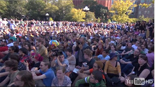 Matt Taibbi, “Why OWS is Bigger than Left vs. Right”, however, may have put his finger on the importance of what has been taking place by virtue of bringing together elements of the left and of the right in American politics. “What nobody [at the top] is comfortable with is a movement in which virtually the entire spectrum of middle class and poor Americans is on the same page, railing against incestuous political and financial corruption on Wall Street and in Washington. The reality is that Occupy Wall Street and the millions of middle Americans who make up the Tea Party are natural allies and should be on the same page about most of the key issues, and that’s a story our media won’t want to or know how to handle.” And one that poses a major challenge to the status quo. Not only the bankers and traders on Wall Street are being confronted by this movement, but those who stage manage political events in this country, from the President on down.
