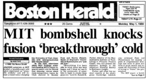 When Tate reported in the Boston Herald on May 1 that the MIT scientists had called Pons and Fleishmann’s work a “possible fraud” and “scientific schlock”, Pons and Fleishmann were viciously attacked at the meeting of the American Physical Society. In a retrospective piece written in 1991, Tate asserted that: “Some say those comments set the tone for the national criticism of the Utah work that followed.”