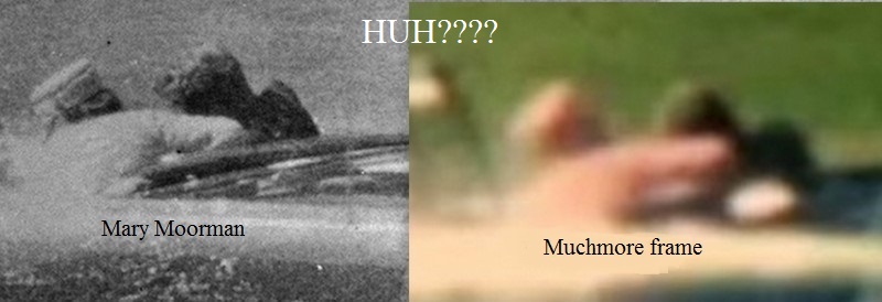 Yes, I did notice that. "Muchmore" and "Moorman" providing what little existing photo "evidence" of the crime of the century? Are they codewords? Similar names to add "much more" confusion? Both? Amazing coincidence of similar names related to a hugely important historic event?