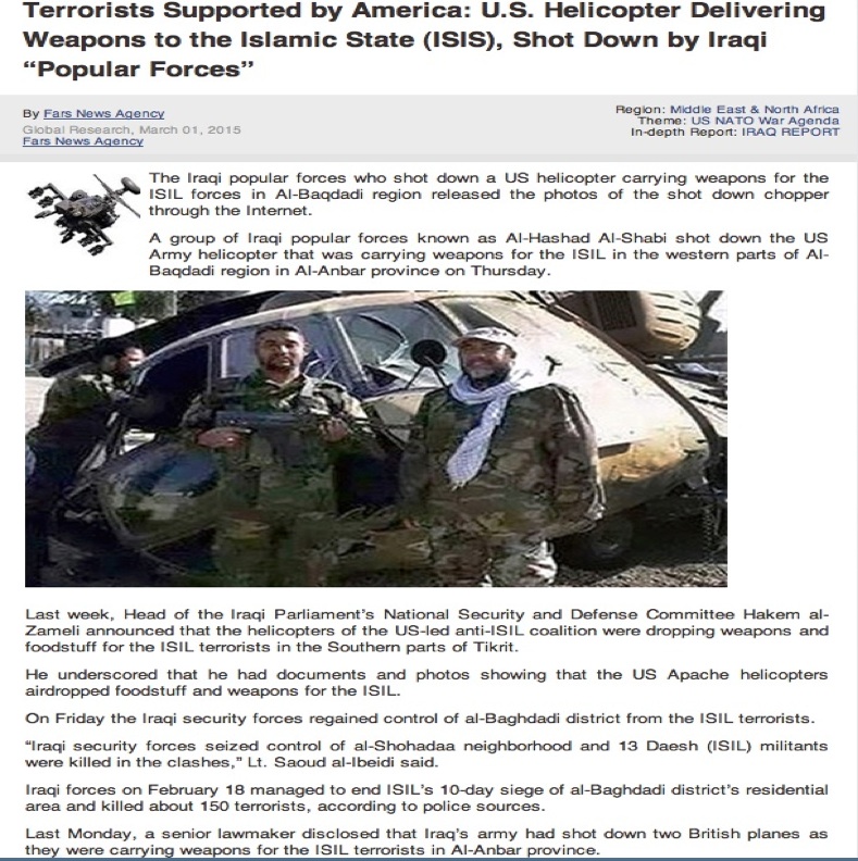 (#5) Iraqi “Popular Forces” shot down US choppers dropping supplies to ISIS: