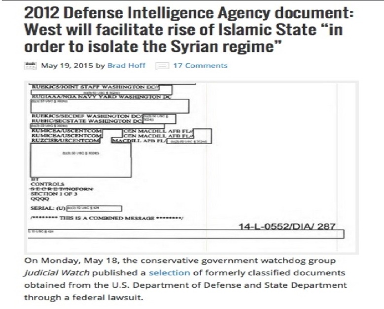 (#1) We have the DIA document creating ISIS as a means to isolate Syria: