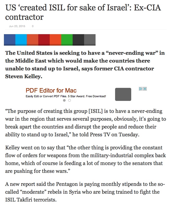 For those who want to verify the articles I have posted, you can do so effortlessly by searching on their titles. For images of US Army tattoos on members of ISIS, search for “images of members of ISIS with US Army tattoos”. You can easily find them. They are all authentic and they collectively establish the fact that ISIS was indeed “Made in the USA”.