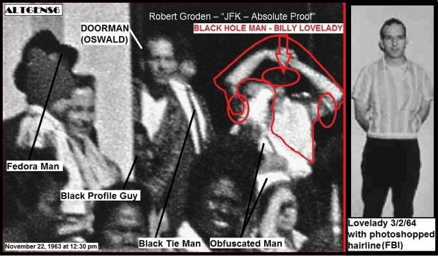 The argument has also been made that Doorman has facial features that resemble those of Lovelady, which is also true; but he also has features that resemble those of Oswald. Richard Hooke has done a study that suggests how the image was rearranged to create the impression that Billy was Doorman, which also appears to have been advanced by “Oswaldifying” the appearance of Lovelady in the third (or left-most) of the three FBI photographs, just as Oswald appears to have been “Loveladyfied” in the Altgens6. What we are unraveling is the performance of artistic photo fakery by the most sophisticated intelligence agency in the world, which was also responsible for recreating the Zapruder home movie:
