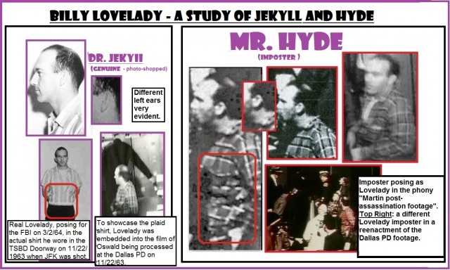 Bear in mind that there would have been no reason to alter images in the doorway area unless someone had been there who should not have been there, where the prime candidate is the designated patsy. Not only were his facial features changed to more closely resemble the face of Lovelady, but Lovelady’s face (in the third of his FBI photos) was altered to more closely resemble that of Oswald: