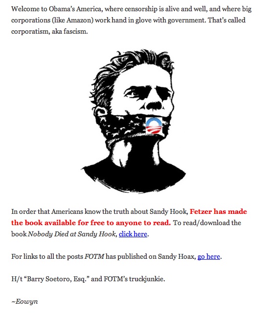 Amazon bans Fetzer's NOBODY DIED AT SANDY HOOK book, he releases it for free