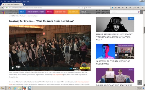 My curiosity got the better of me and I began searching to see if perhaps other artists and/or musical groups had also recorded performances related to Orlando. Well, I hit the jackpot. It didn’t take long before I came across a site called “Unicorn Booty”, which is a website that caters to the gay and LGBT community. On this site I found an article posted on June 21st entitled, “The 5 Best Musical Responses to the Orlando Shooting”.