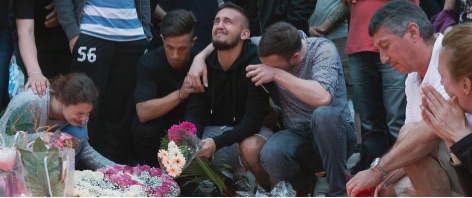 There are several stages in the grieving process grief, commonly known as shock, denial, anger and acceptance. This man’s twenty-one year old son has just been murdered. How does he express his grief? He walks through the streets of Munich carrying a bouquet of flowers and his son’s photograph. He then goes up to random people, shows them the photo and says, “This was my son.” Again, this is not believable. He shows no signs of distress or loss and he sheds no tears. The media is using this as photo-op in an attempt to play on our emotions hoping that we will be sympathetic.