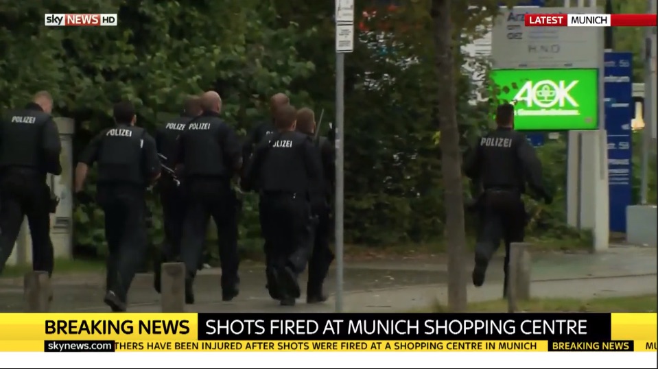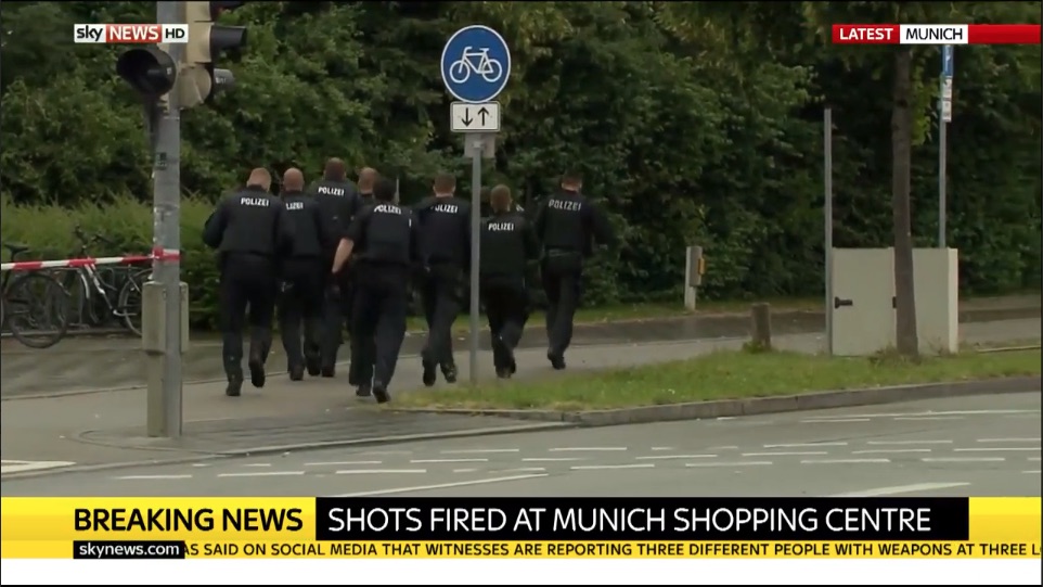 Additionally, prior to being deployed in a tense and fluid situation such as this, where innocent human life is at risk, you must have coordination among the various officers. Certain teams of officers are assigned specific tasks. One group might be securing one scene while another group is securing another. In other words, everyone has an assignment to execute. However, what we saw in Munich were officers running around seemingly not really knowing what their job is. For instance, take a look at the following photographs.