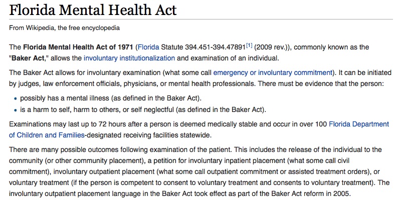 James Tracy has informed me that this may be taking place under the authority of “the Baker Act”, as follows: