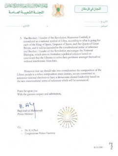 Another letter sent by Khaled Kaim, then Deputy Foreign Minister of Libya, thanks Dr. Paul for doing “whatever it takes to promote peace and stop war.”