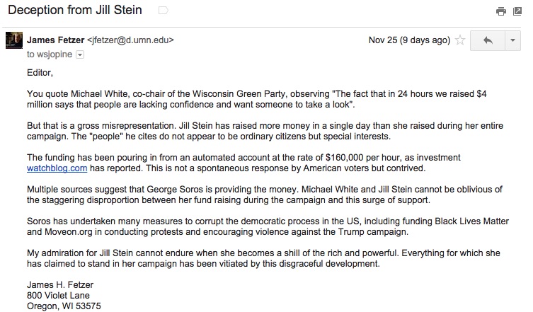 Seems to me CIAnonymous has this one figured out. Also seems to me that Jill Stein is a despicable human being.