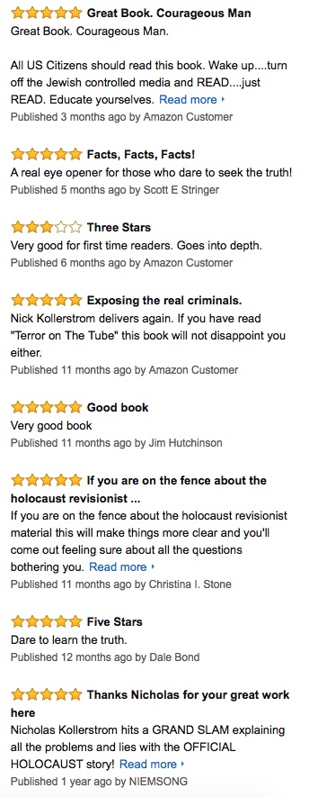 I would highly recommend this book maybe as a ‘starter’ in terms of the whole holocaust revisionist topic. I read this and then read much more deeply into it via German Rudolp’s “Dissecting the Holocaust” and as I read more I realized Kollerstrom had read all this stuff and given a real nice accessible ‘digest’ of the topic. Things he may only devote s few sentences too can all be backed up and supported if you want to read more extensively.