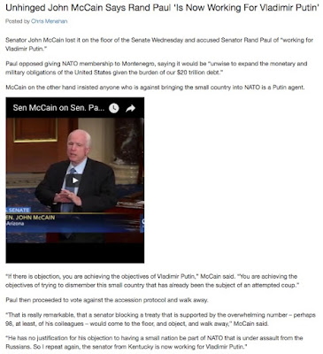 Now John McCain says Senator Rand Paul is working for the Russians.