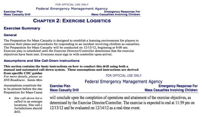 "The proof of fraud extends to the discovery of the FEMA manual for a 2-day event at Sandy Hook, with a rehearsal on the 13th, going LIVE on the 14th."