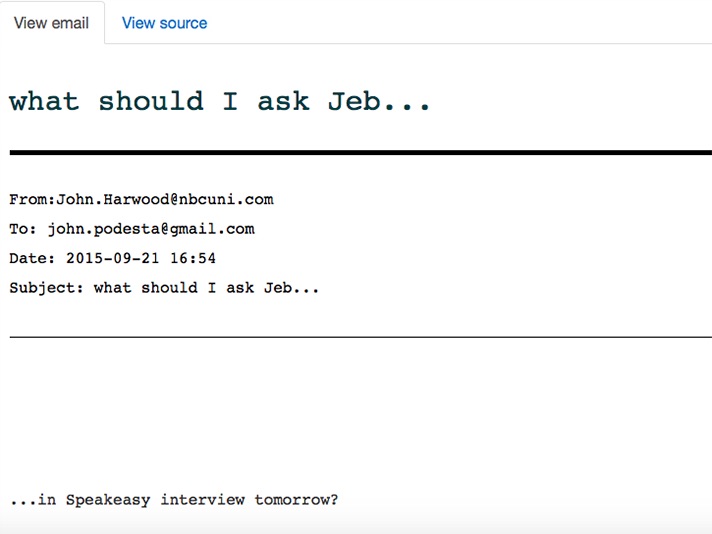 But it wasn’t just CNN and the Washington Postwho colluded and worked with the DNC and Democratic Party. NBC News also dipped their hand in the honey pot, as an email from John Harwood, a chief journalist for CNBC, sent to John Podesta, head of staff for the Hillary Clinton campaign, asking for questions to ask Republican candidate Jeb Bush in an upcoming interview.