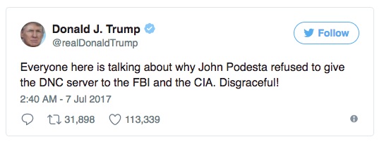 All Trump did was tweet the honest truth about Podesta’s gross failure to turn over the server to the proper authorities for investigation after the reported leaks à la WikiLeaks.
