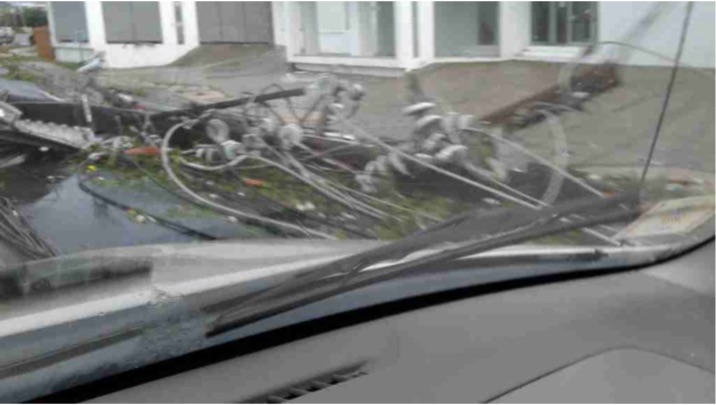 My house is a corner house, so this is what it looked like, as I was able to take a gander at the destruction when winds finally subsided to “tropical wind” force at 3PM. Not good.