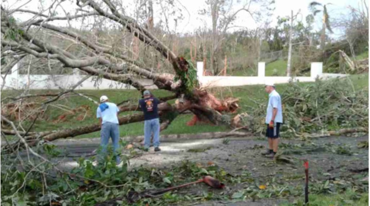 My neighbor Jorge told me that his neighbor, Nelson, had a chain saw, and then Teodoro showed up with Rafi, who had an electric Craftman “reach” extension mini chain saw that just needed electricity to operate. That’s when I fired up my Coleman, and with an extension cord, we were in business. Ramón, who owns a car dealership, had a magnificent RAM1500 pickup truck, which combined with my 3⁄4 nylon rope, made for quite a combo. Thus, we were able to move the large portions of the trees quickly and efficiently. Teamwork. It took us more than 4 hours to finish the job, and when the first car traversed the section that had been blocked, we all cheered in joy celebrating a job well done. Except for Jorge, these are people I had never met, and I asked myself: why does it have to take a catastrophic event like this to bring us together to fight for one common goal? Who knows.