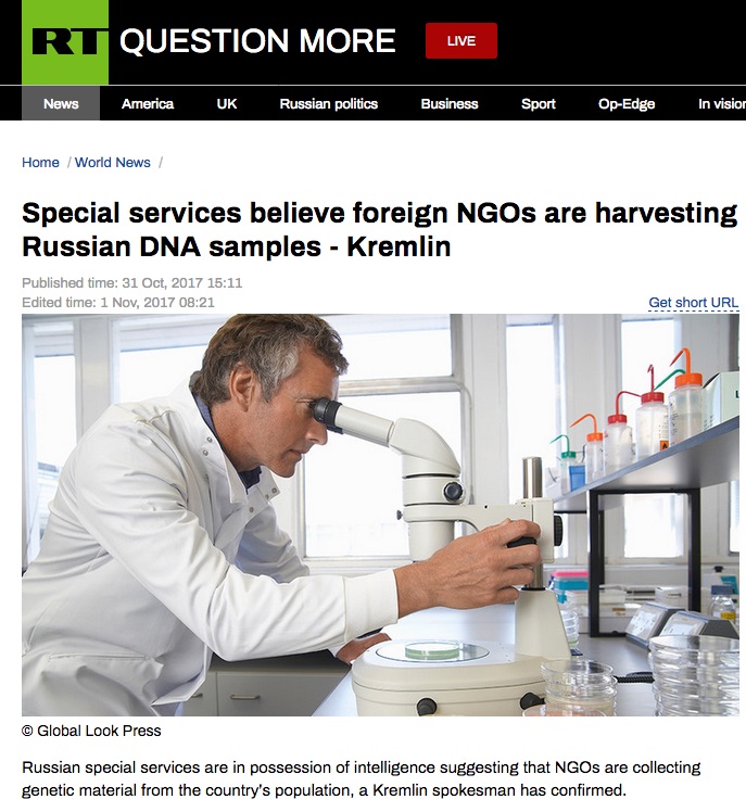 Information has reached me from Italy, Germany and the UK that foreign-funded NGOs in Russia are collecting Russian DNA samples from all over Russia for the US Government. I have found English language verification of these reports.