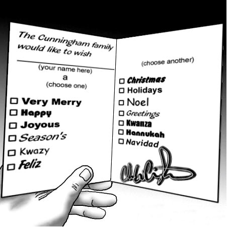 The transvestite spoke again: “There is one thing, though. Religious holidays are important, but can’t we learn to celebrate them in ways that unite, not divide? For instance, instead of all this business about ‘Gloria in excelsis Deo,’ why not just ‘Season’s Greetings’?”