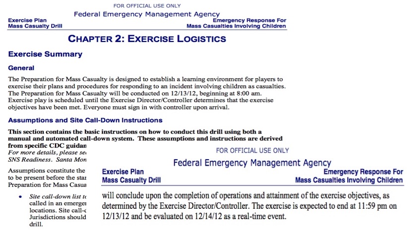 From the FEMA manual for the Sandy Hook drill 13-14 December 2012 |