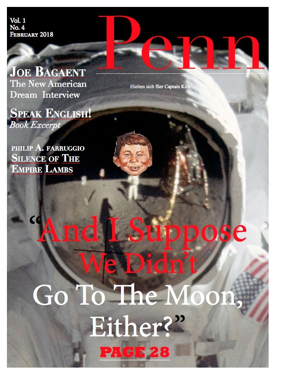 PENN magazine, edited by my colleague, Mike Palecek, has published its latest issue, which includes a stunning article by Winston Wu, “The Apollo Moon Hoax: 35 Proofs We Didn’t Go”. Winston is a brilliant guy and this article is my favorite on the subject. I recommend beginning with “Conspiracy Theory: Did we Land on the Moon?”, which advances one scientific reason after another about why we could not have gone and abundant evidence that the moon landing footage was faked. For those who may harbor lingering hopes that we really did go, this is the place to start.