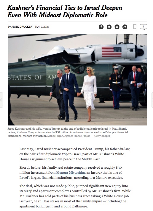 Kushner felt further undermined by how the president “had been gleefully telling multiple people that Jared could solve the Middle East problem because the Kushners knew all the crooks in Israel.”