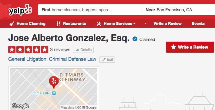 Curiously, he has no website nor photos for his law practice–only a suspect Yelp profile. Also, law office address is listed at 22-55 31st St, Ste 206B, Astoria, NY 11105. However, it does not appear at Google maps. I find it odd that an attorney would conduct their practice in this manner.