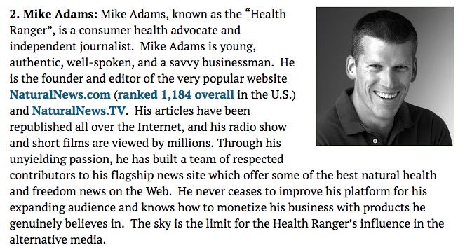 Mike Adams has been ranked the 2nd most influential in the alternative media: