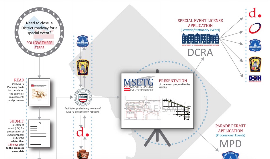 "Meanwhile, I looked into the permit process for a major event in Washington, D.C., that would involved closing roads and discovered the procedure required submitting a Letter of Intent at least 180 days in advance of the event: "