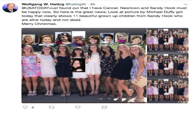 Wolfgang Halbig has a photo of eight of the Sandy Hook girls “all grown up”. |