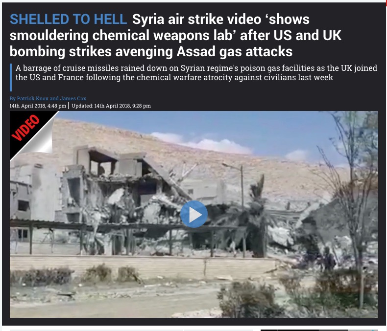 1. I tried to find any sources outside the USA that were covering this “heineous” attack live. I could find nothing on RT, Presstv, Southfront, SANA, Sputnik or any media outside the propagandized USA, Britain, Europe or France that was covering this “strike” live. This struck me as odd.