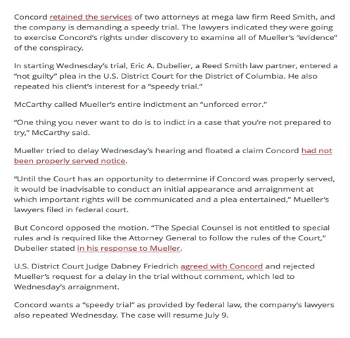 The Russians are calling his bluff and even asking for a speedy trial and will get discovery. |