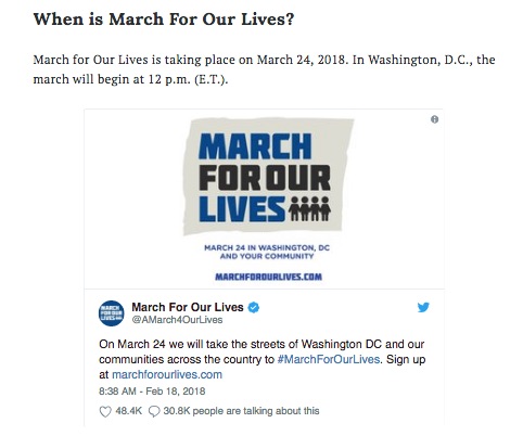 An Internet hoax has spread suggesting that the student-led demonstration March for Our Lives was planned months in advance to the actual event.