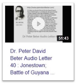 At the time, there were people who speculated that the seven hundred survivors that fled for the jungle were hunted down and killed by U.S. Military, Guyanese troops and British commandos who happened to be in the neighborhood for “training exercises”. But it was Dr. Peter David Beter that revealed the truth about what really happened for those who subscribed his “audio letters”.