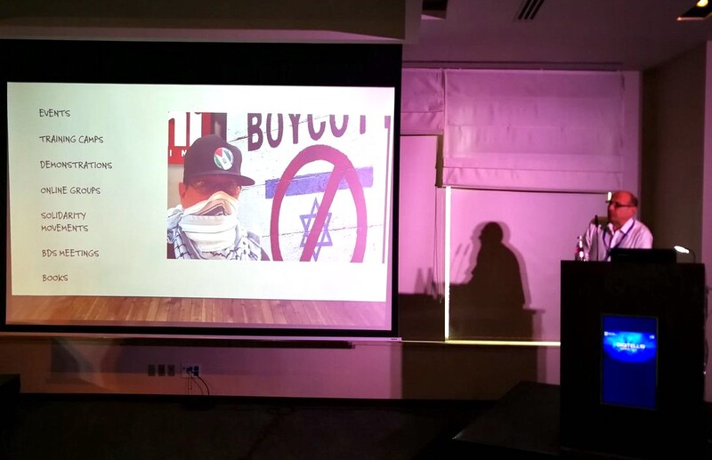 Collier spoke at this year’s conference. One slide he displayed during his presentation indicated that Collier may be a little paranoid. He warned that Palestinian rights activists were using “solidarity movements,” “BDS meetings” and “books.”