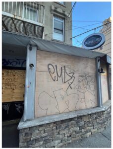 Boarded up Baker Street Irregulars on First Avenue, the original famous site of Friday’s